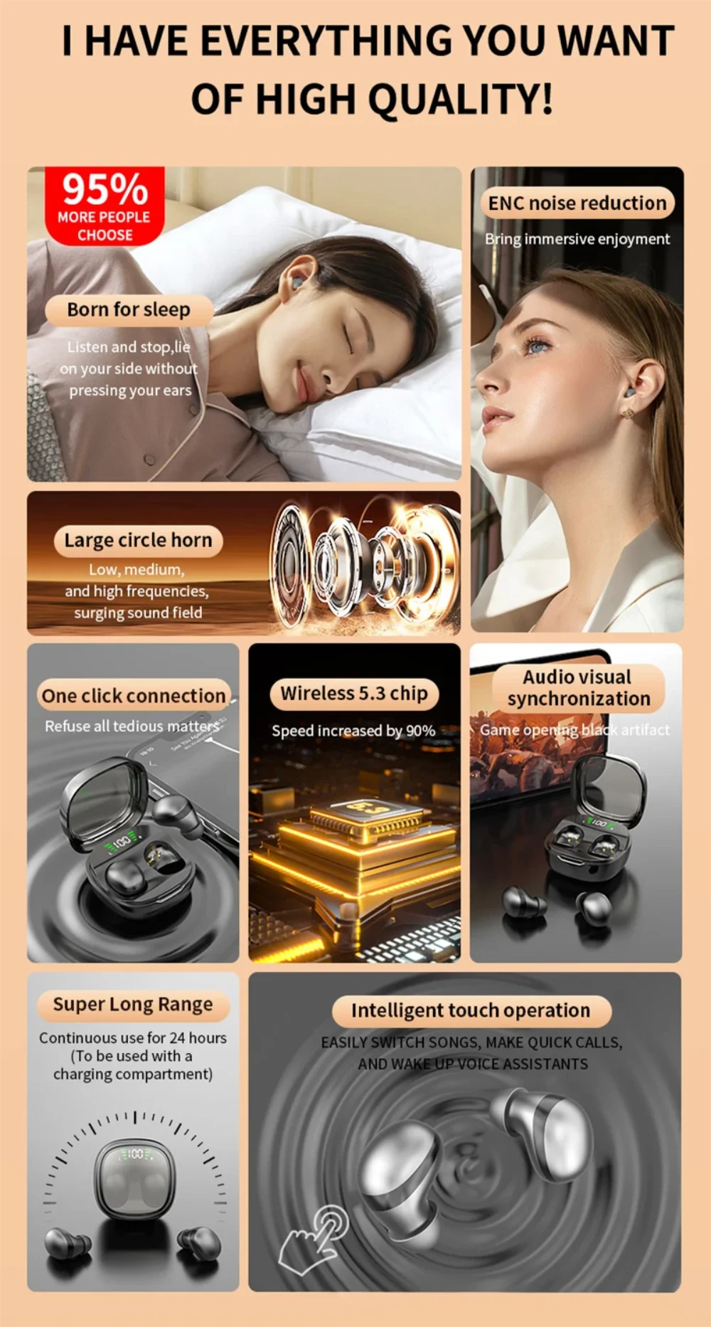 Powered by cutting-edge Bluetooth 5.3 and intelligent active noise-cancellation, these premium wireless earbuds transform how you listen. Whether you're catching up on sleep, powering through work, or embracing outdoor adventures, Luna adapts to your world. Crystal-clear HiFi sound meets practical convenience with an integrated microphone for hands-free calls and intuitive volume controls.